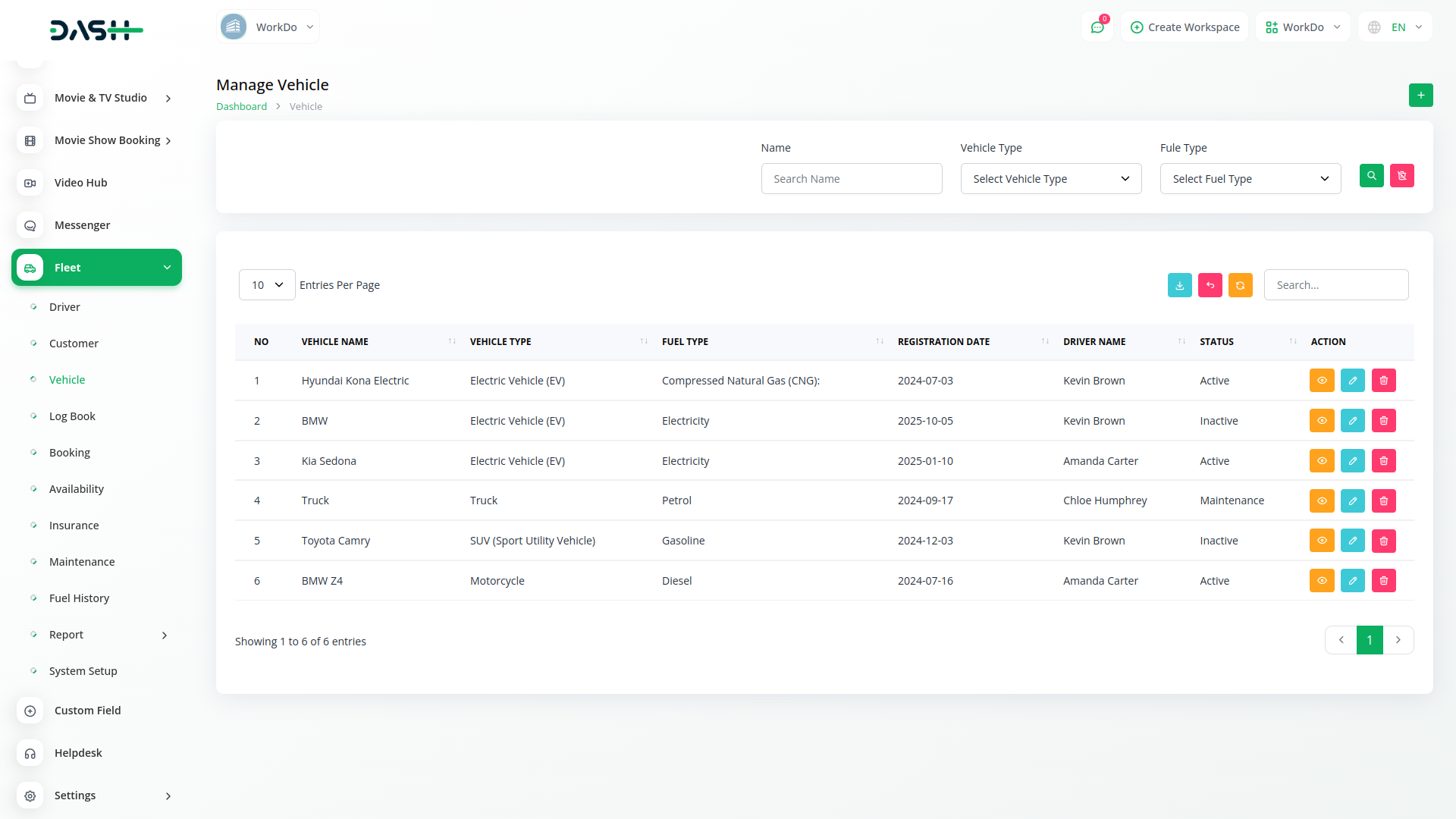 In vehicle management, you can keep a list of how many vehicles your company has or how many new ones have arrived, and you can also create where the driver is to be assigned to that vehicle.