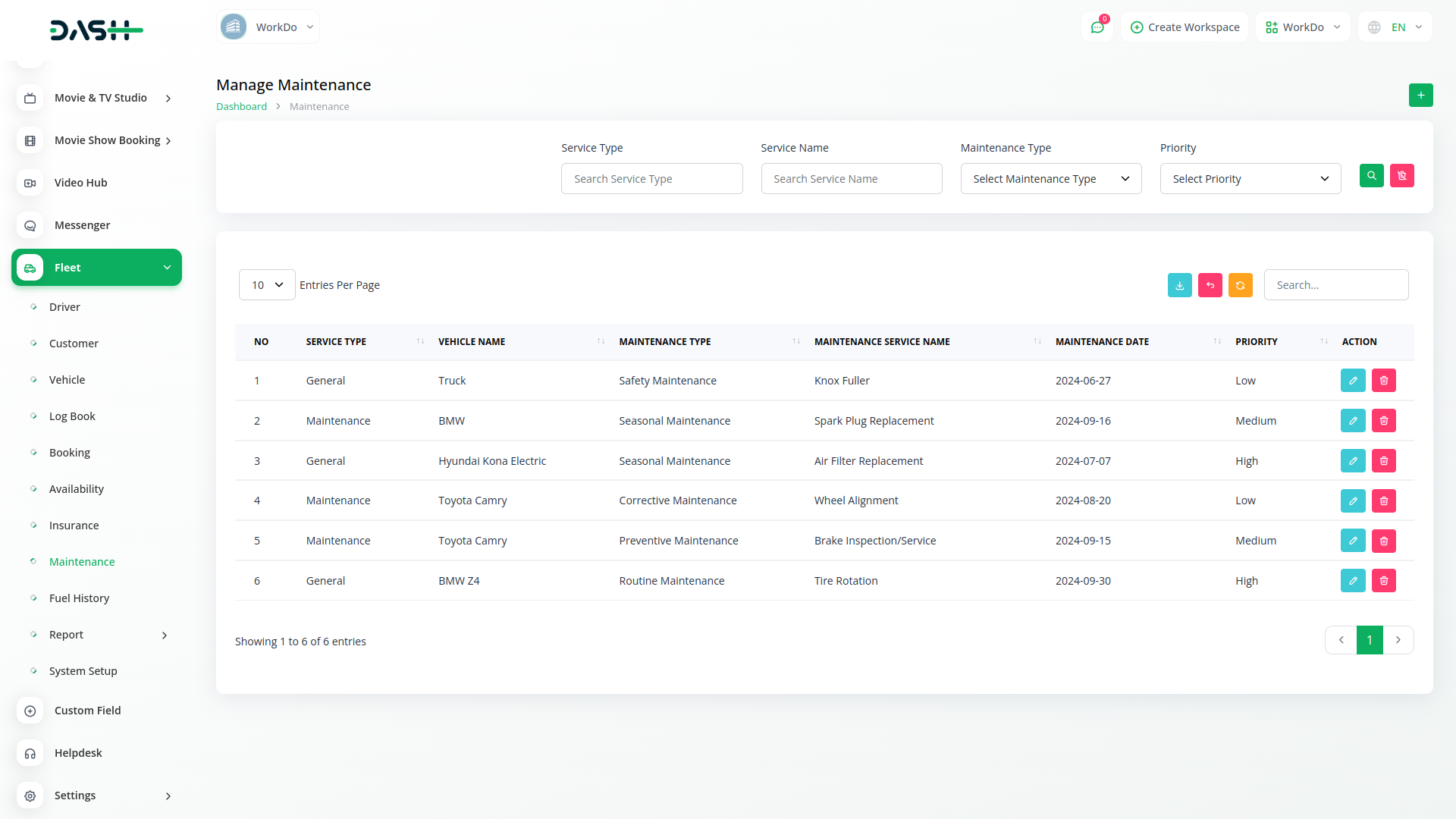In Fleet Management, you are also given a maintenance management system of your vehicle in which you can manage the maintenance of the entire vehicle and where you can add employees with cost, priority, total cost etc.